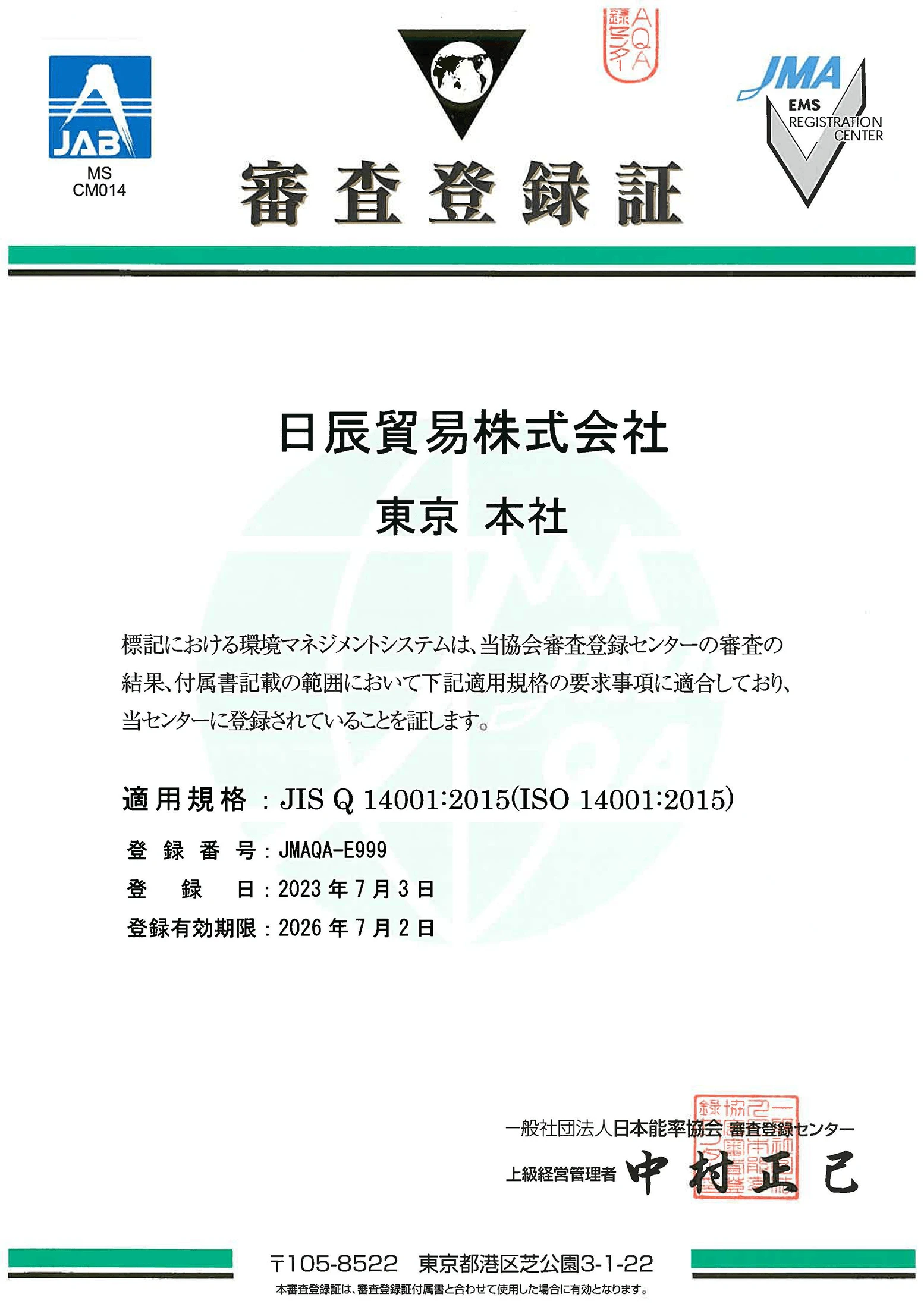 日辰貿易は全ての企業活動を通じ、地球環境の維持と経済発展の調和を目指す「持続可能な発展」の実現に向け、下記の指針に基づき当社で働く全ての社員が自主的、積極的に行動し、広く社会に貢献いたします。
